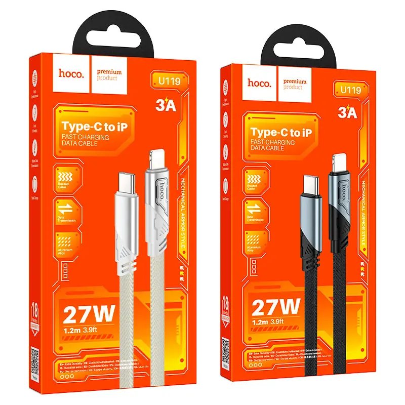 كابل من النوع C إلى جهاز iP "U119 Machine" بتقنية الشحن السريع PD بقوة 27 واط