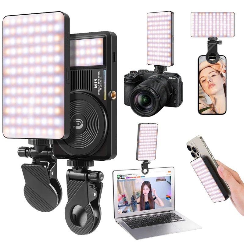 مصباح فيديو LED محمول M19 ثنائي اللون يعمل بالبطارية.
