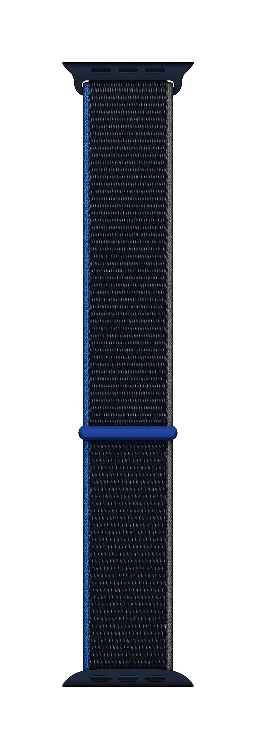 هذا سوار ساعة آبل (Apple Watch) رياضي أسود مصنوع من مادة الفلوروإلاستومر.